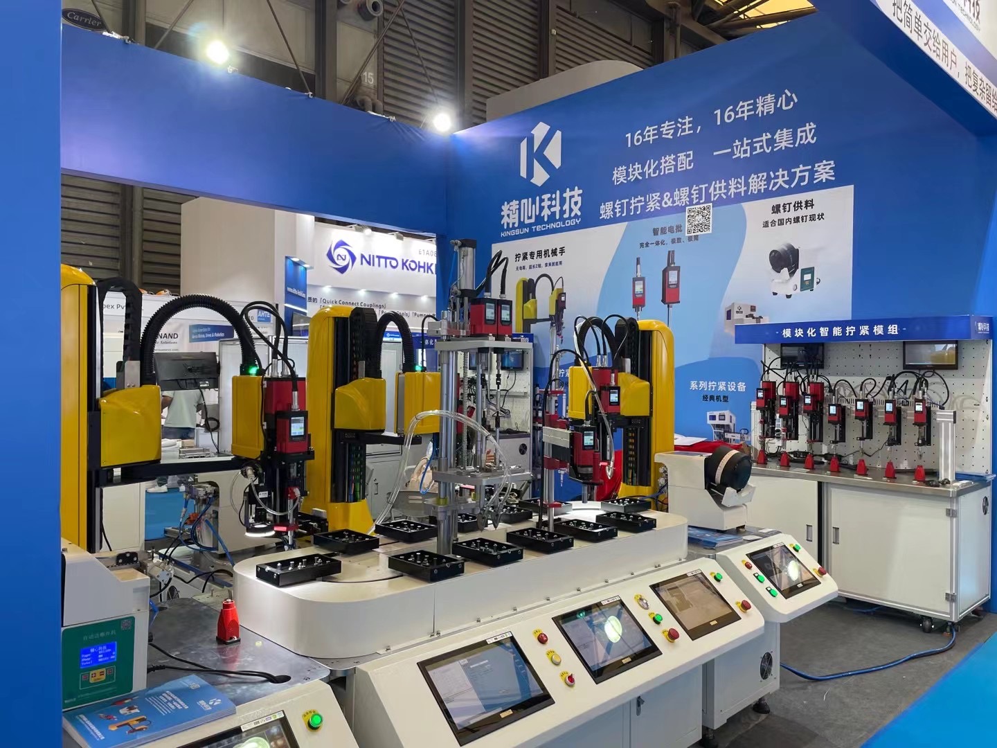 精心科技于7月5-7月8日在上海新國際博覽中心參加2023年上海國際工業(yè)裝配與傳輸技術展覽會,參與此次展覽的產(chǎn)品有自動送釘設備、智能電批及鎖附機器人。